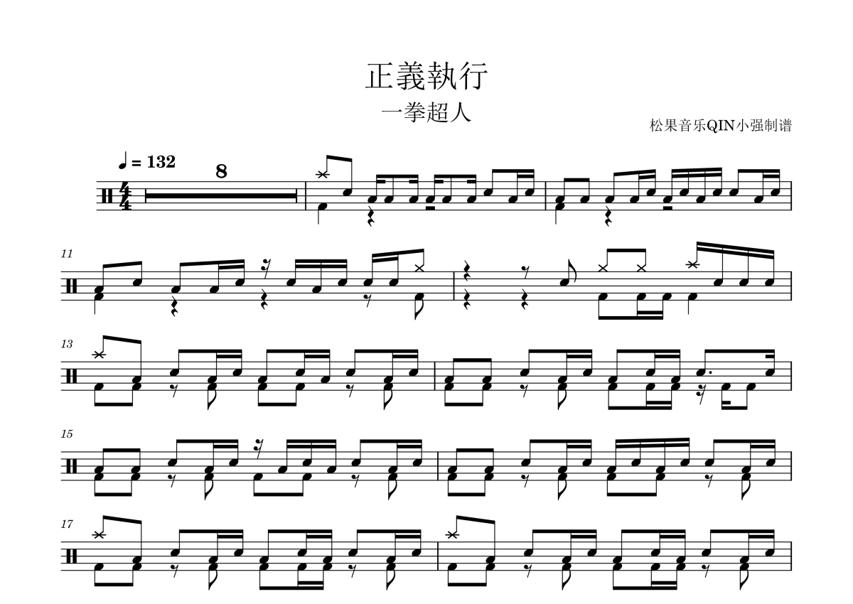 一拳超人op《正义执行》架子鼓谱
