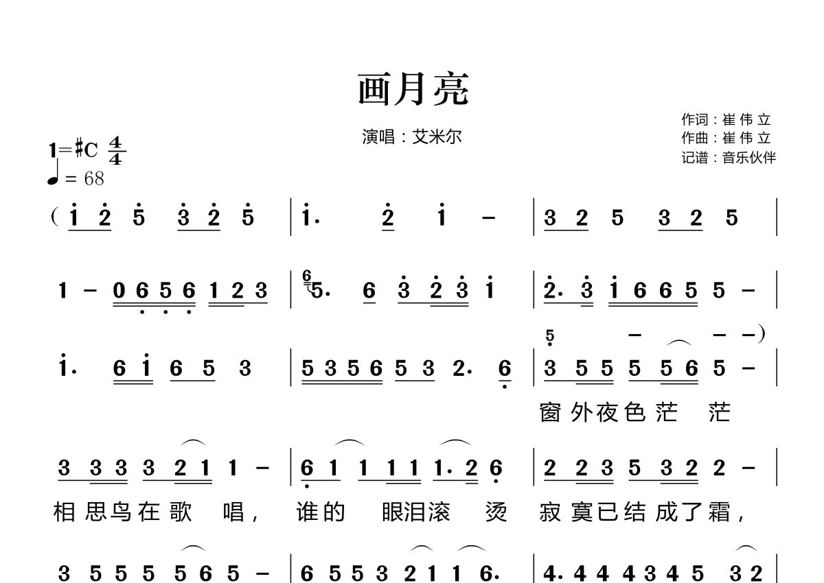 画月亮简谱 - 艾米尔演唱