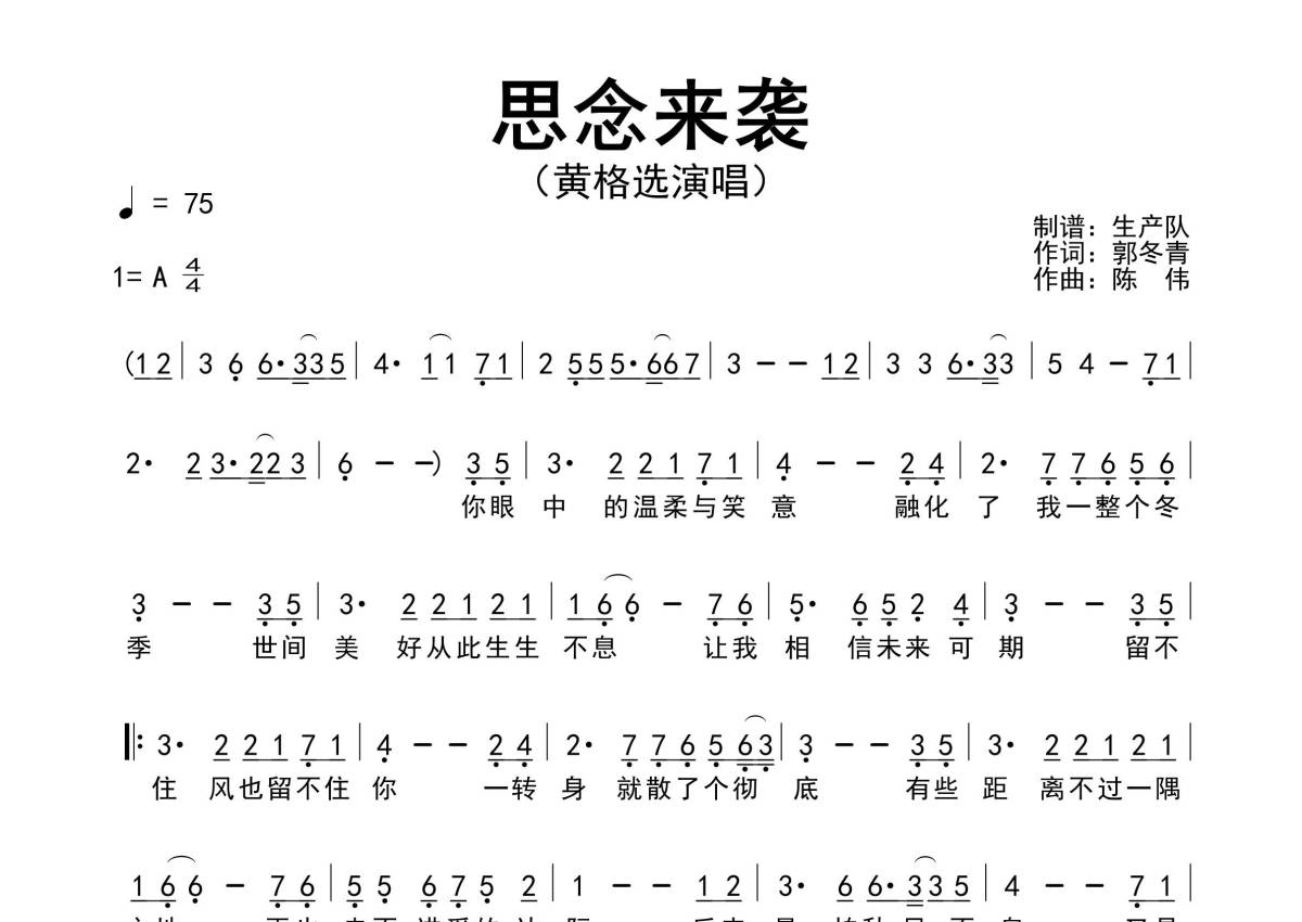 黄格选《思念来袭》简谱 - 原版简谱
