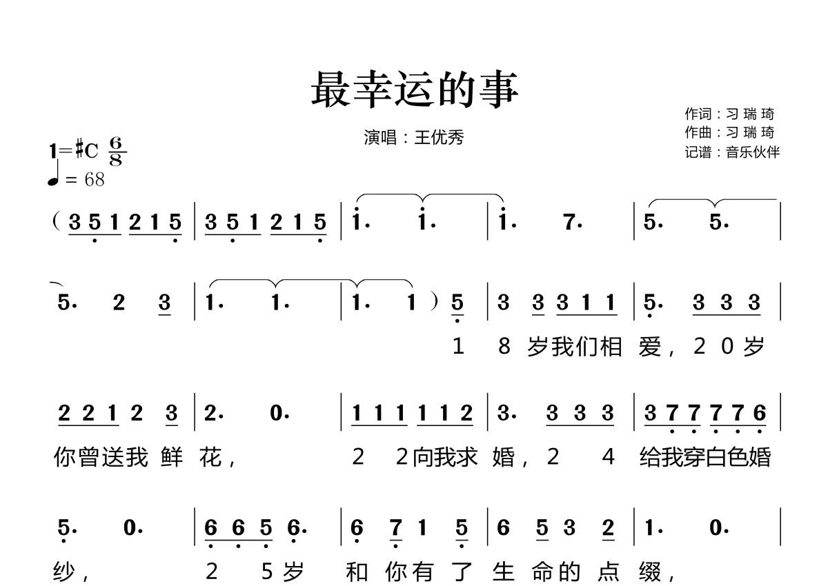 最幸运的事简谱 - 王优秀演唱