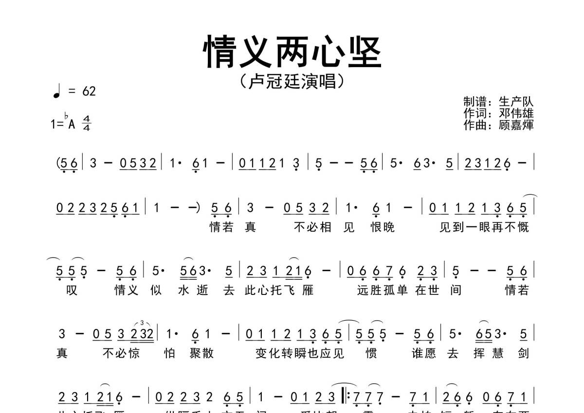 卢冠廷《情义两心坚》简谱 - 原版简谱