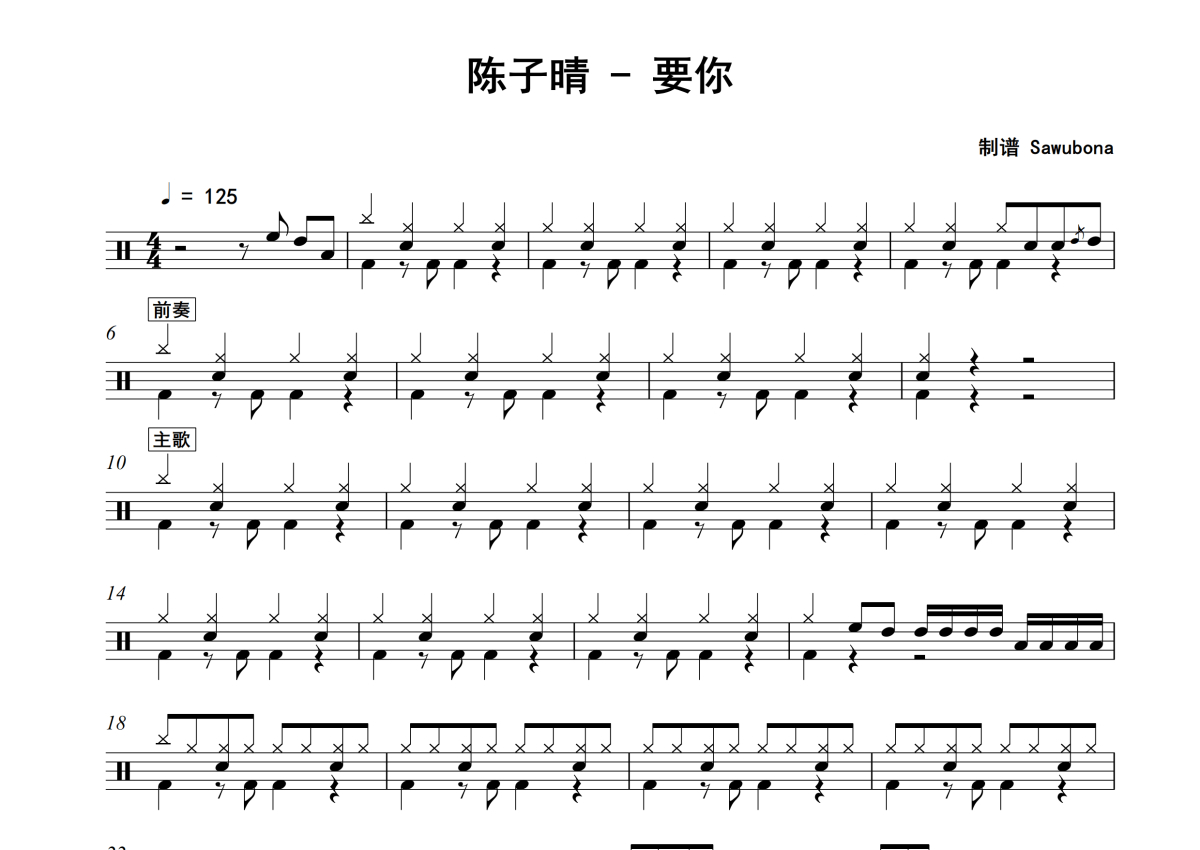 要你架子鼓谱 - 陈子晴