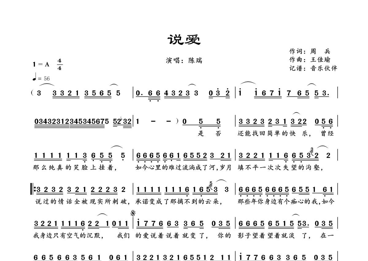 陈瑞《说爱》简谱