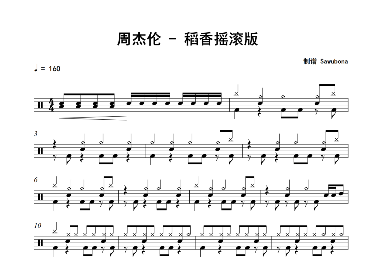 周杰伦《稻香》架子鼓谱 - Remix摇滚版