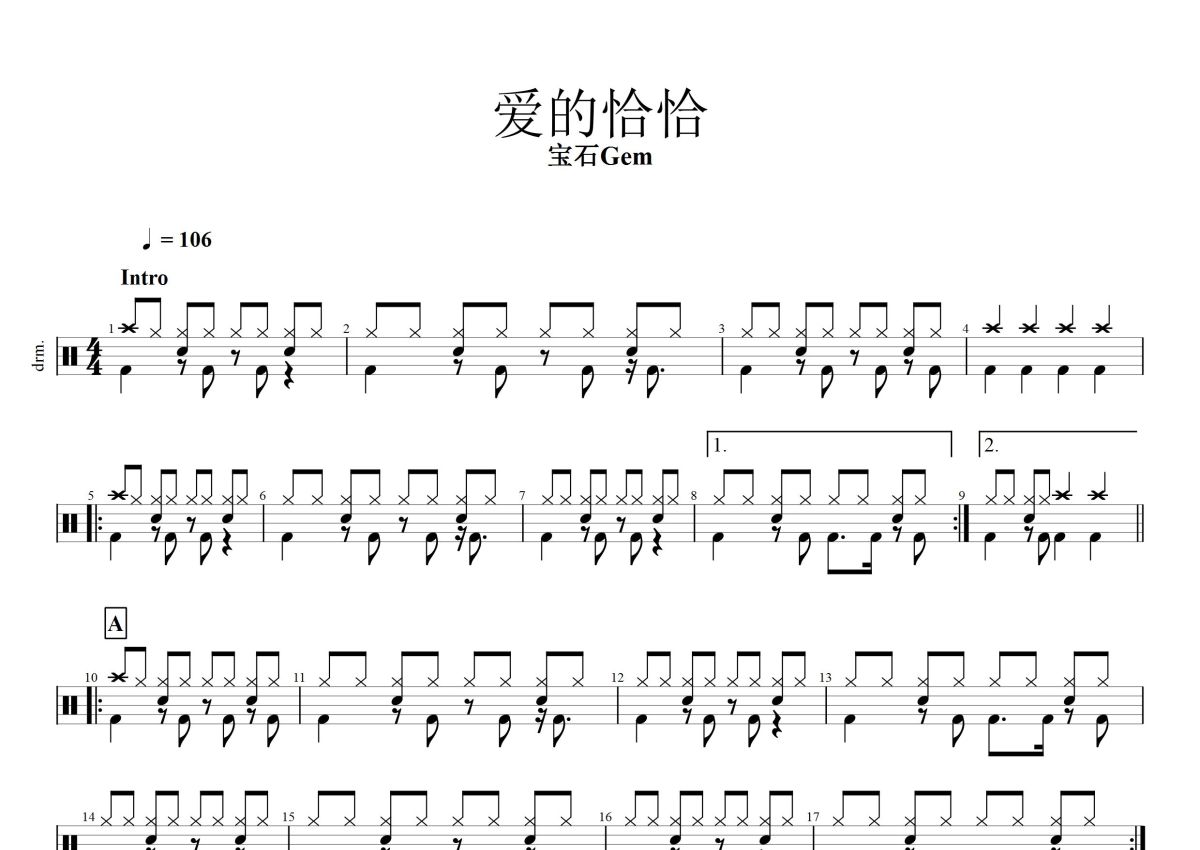 宝石GEM《爱的恰恰》鼓谱 - 架子鼓谱