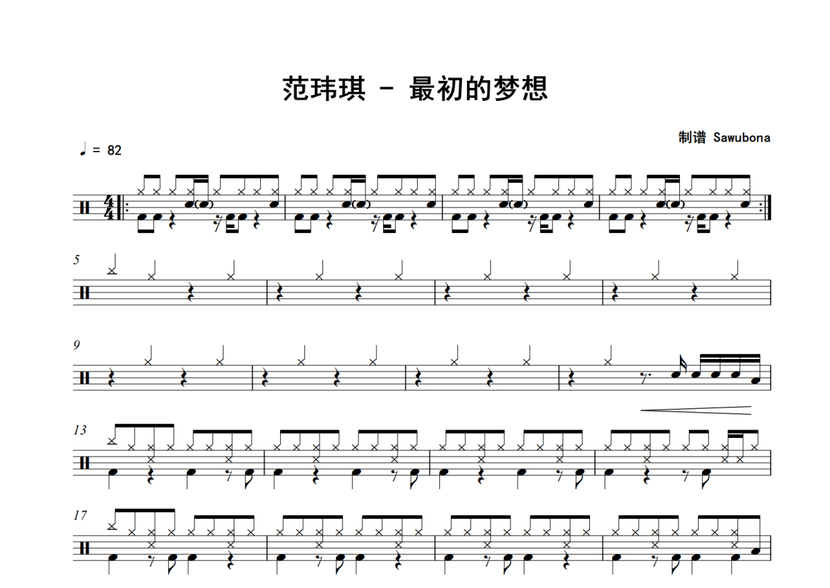 最初的梦想架子鼓谱 - 范玮琪