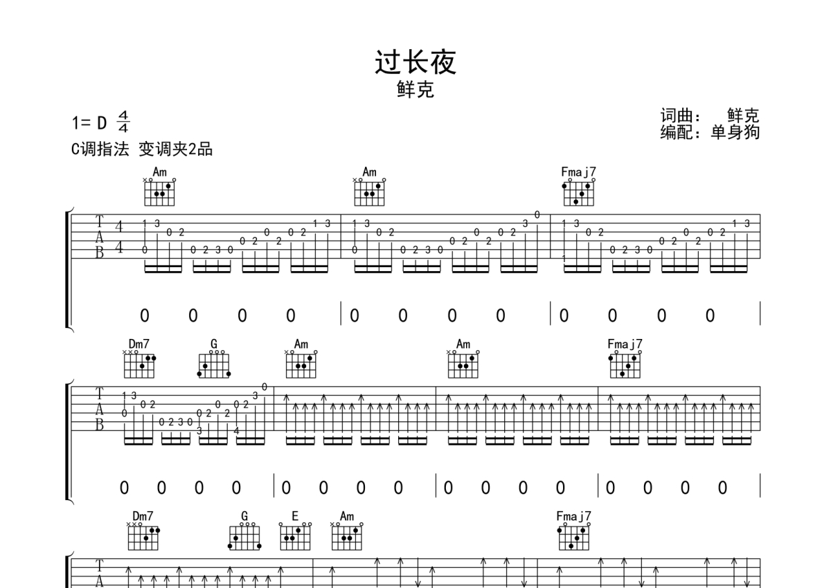 鲜克《过长夜》吉他谱