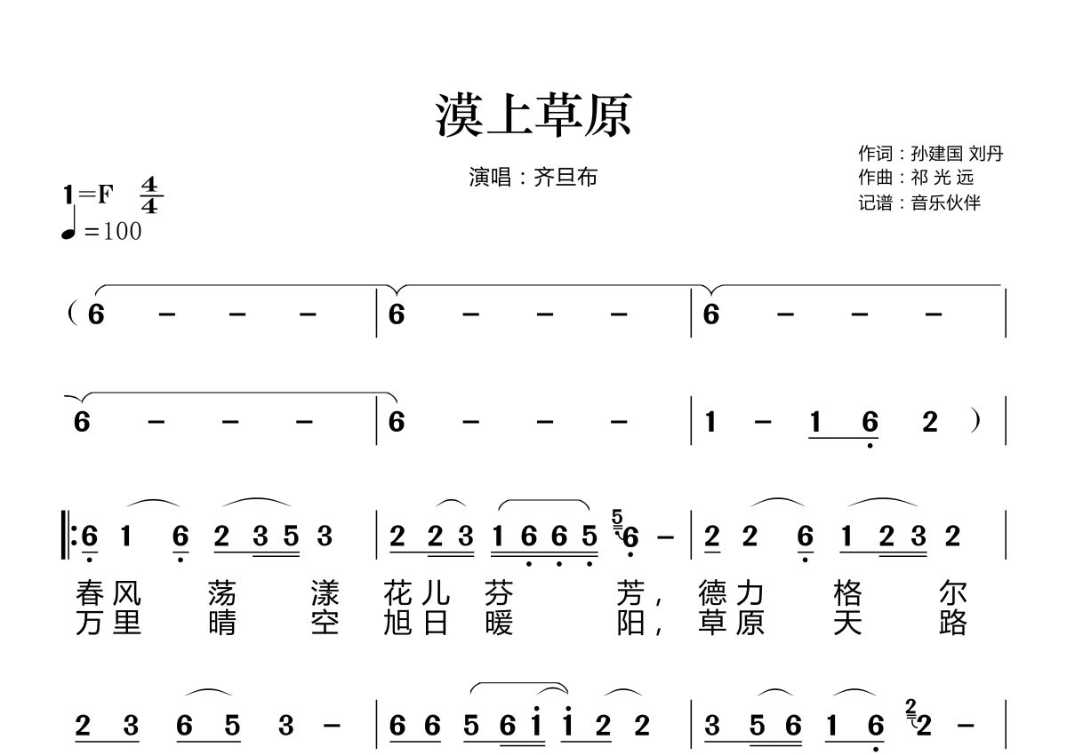 《漠上草原》是齐旦布演唱的一首歌曲,这份简谱共有两张高清图谱,图谱由 @音乐伙伴 编配上传。