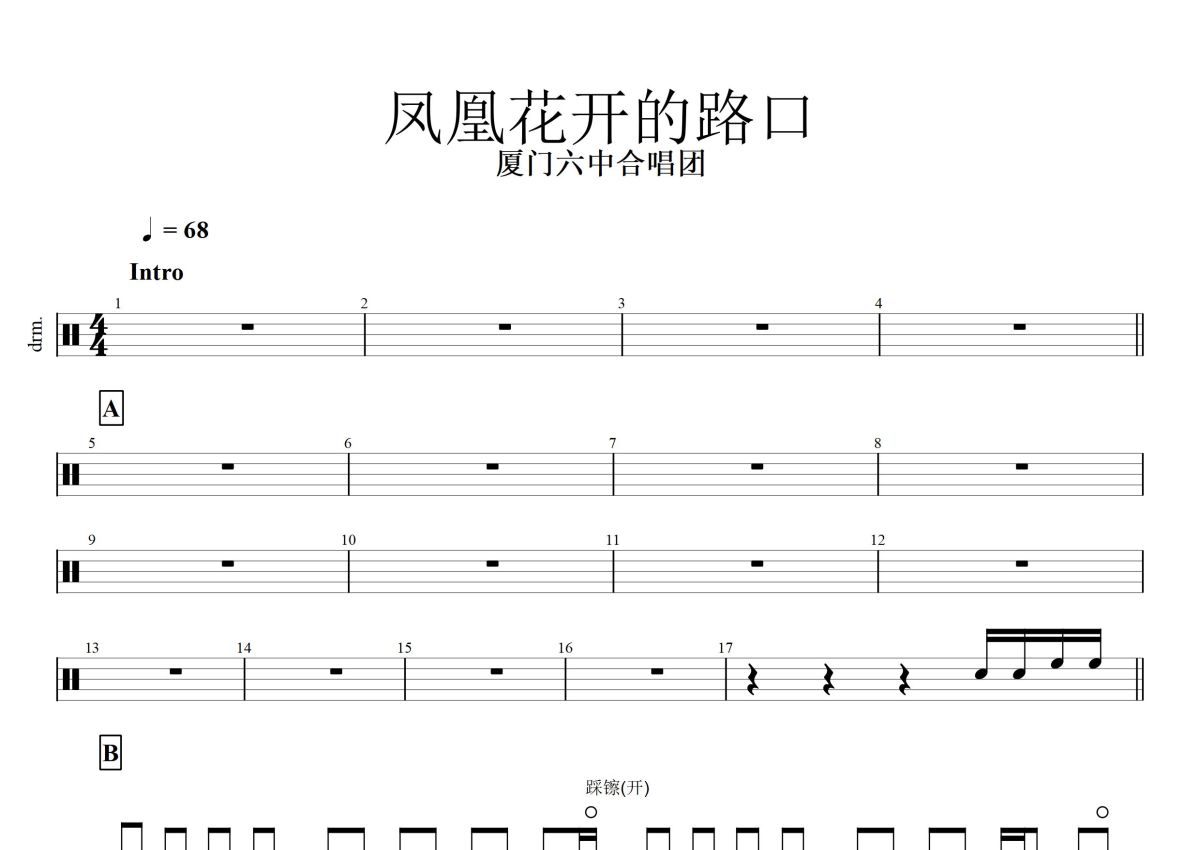 厦门六中合唱团《凤凰花开的路口》鼓谱 - 架子鼓谱