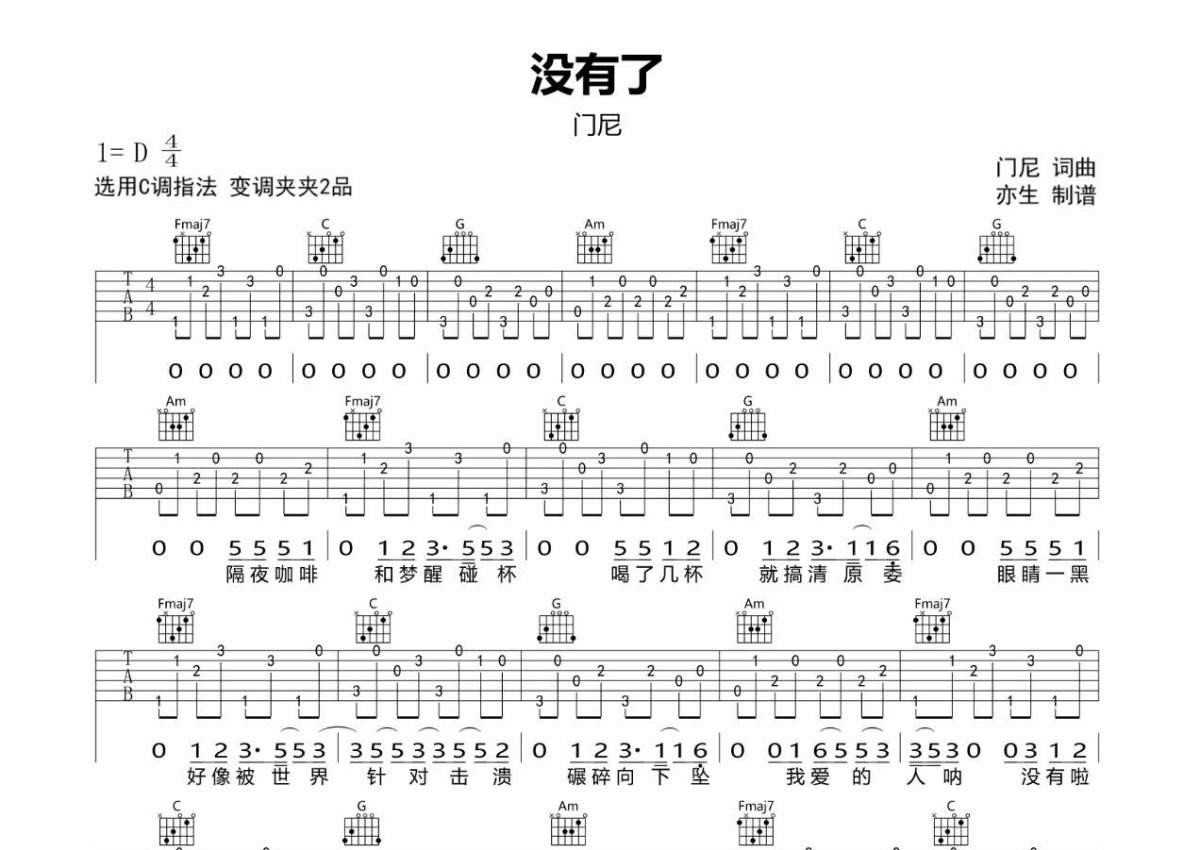 门尼《没有了》吉他谱 - C调弹唱六线谱