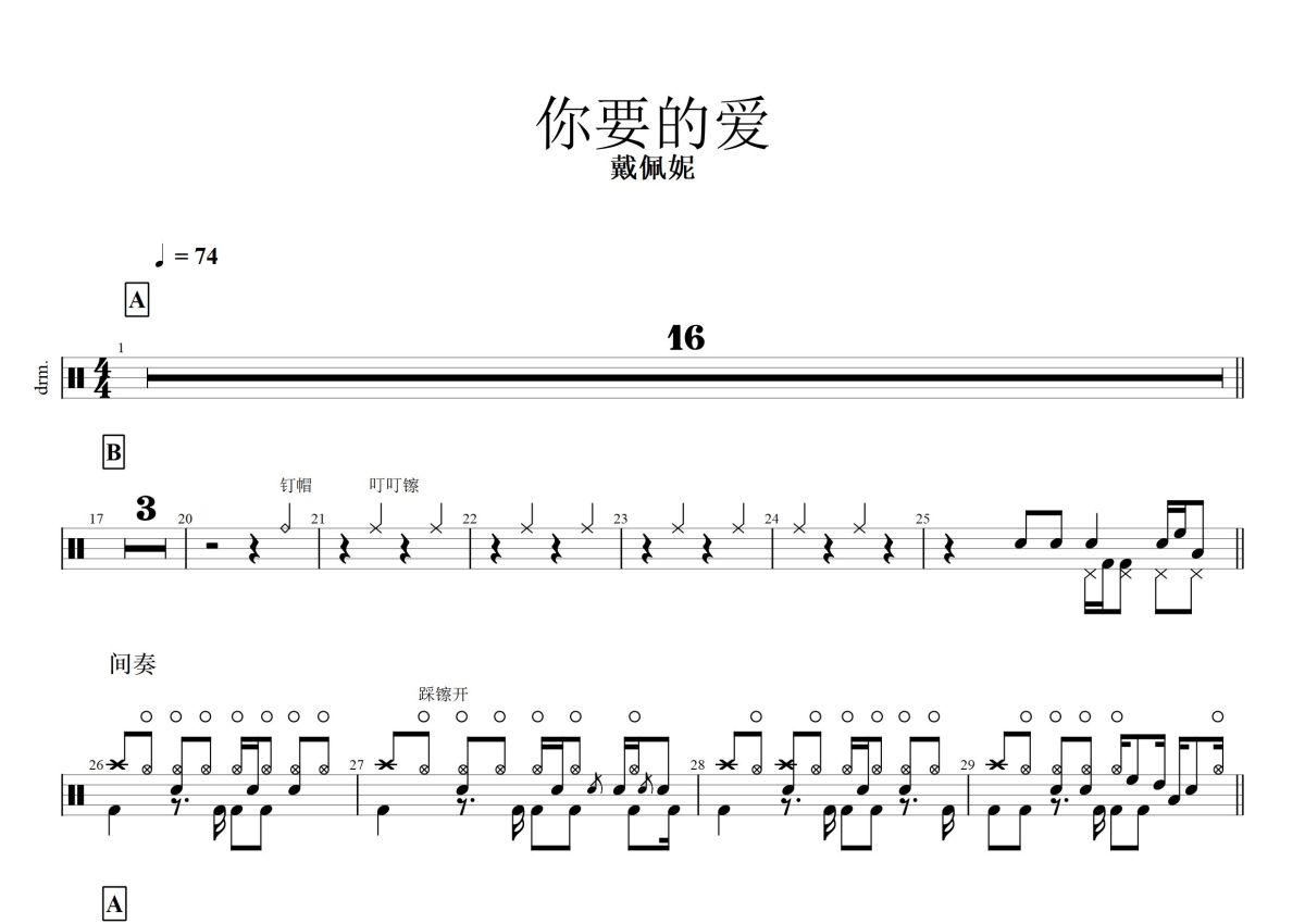戴佩妮《你要的爱》鼓谱 - 架子鼓谱