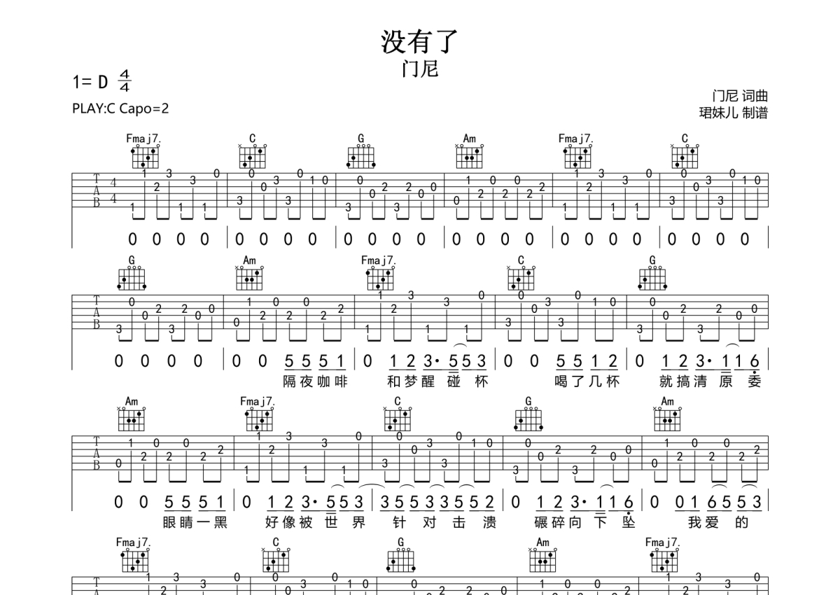 没有了吉他谱 - 门尼 - C调弹唱六线谱