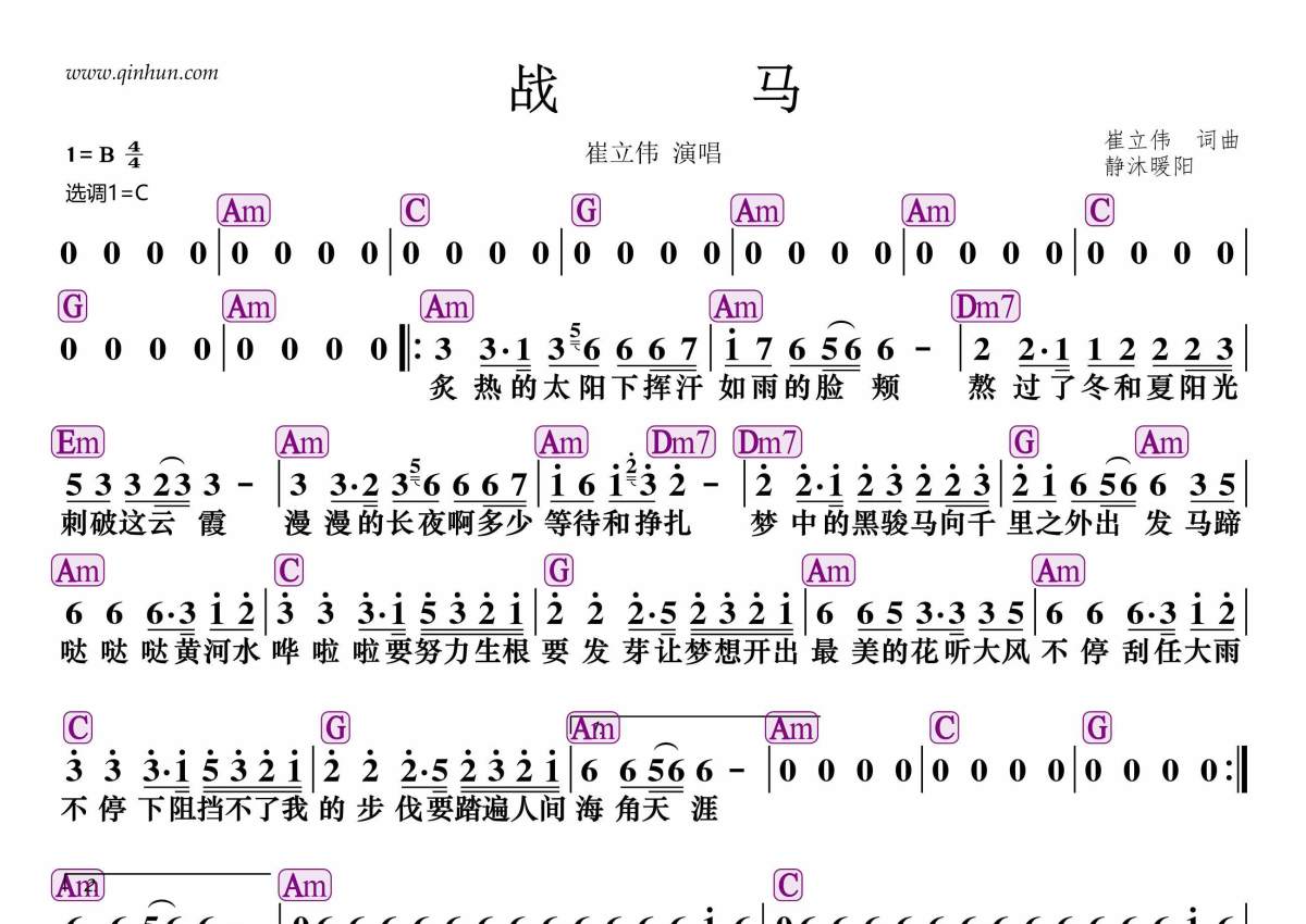《战马》是崔伟立演唱的一首歌曲,这份简谱共有一张高清图谱,图谱由 @静沐暖阳 编配上传。