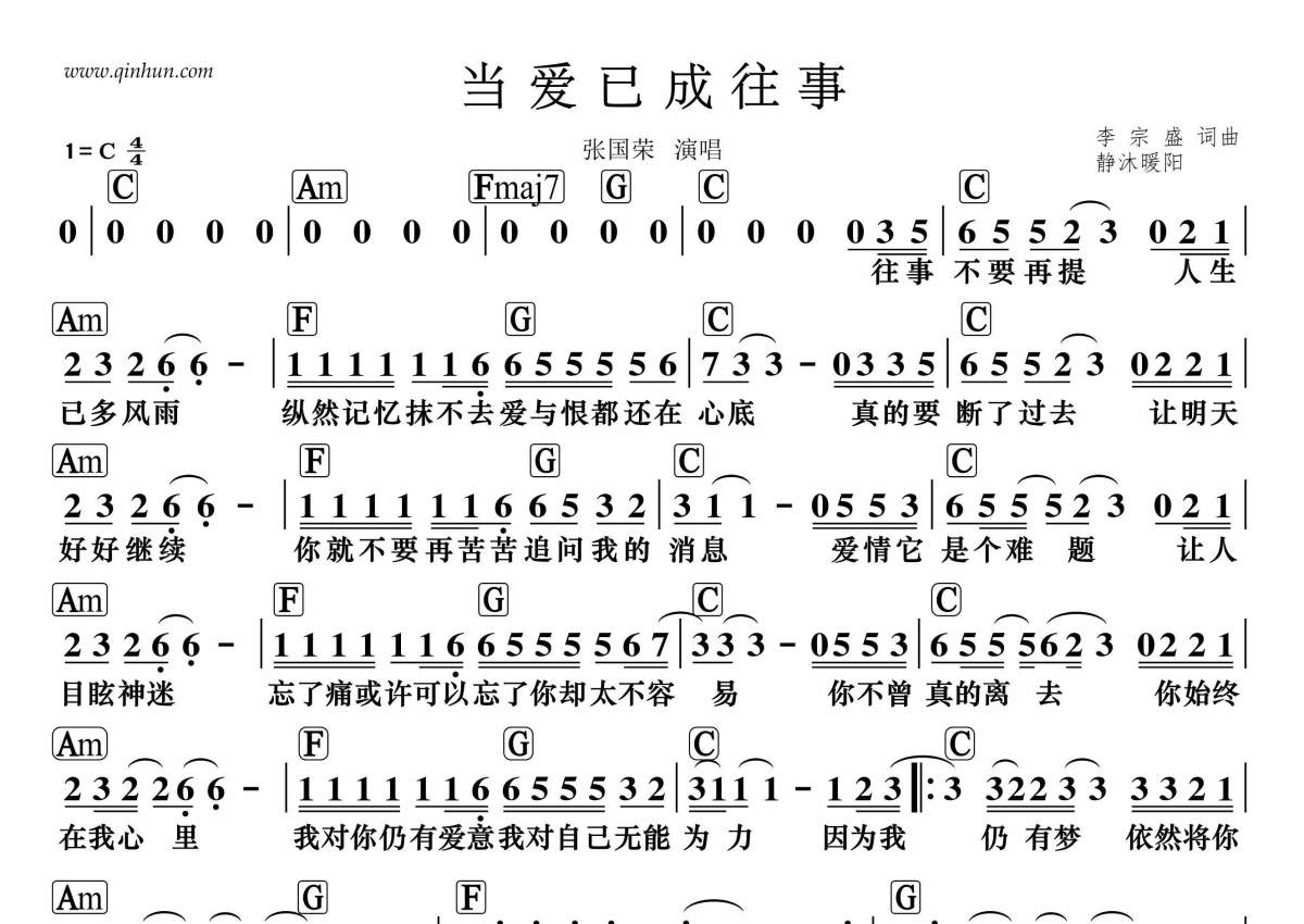 张国荣《当爱已成往事》简谱