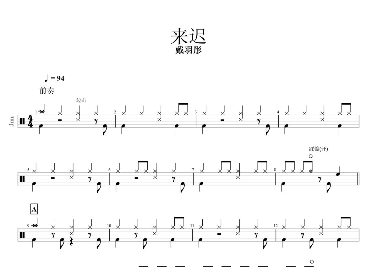 戴羽彤《来迟》鼓谱 - 架子鼓谱