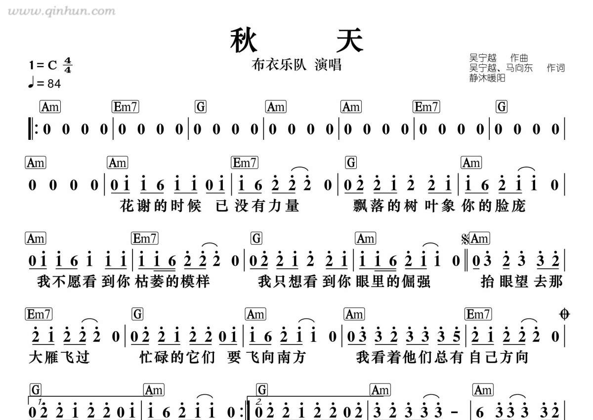 秋天简谱 - 布衣乐队