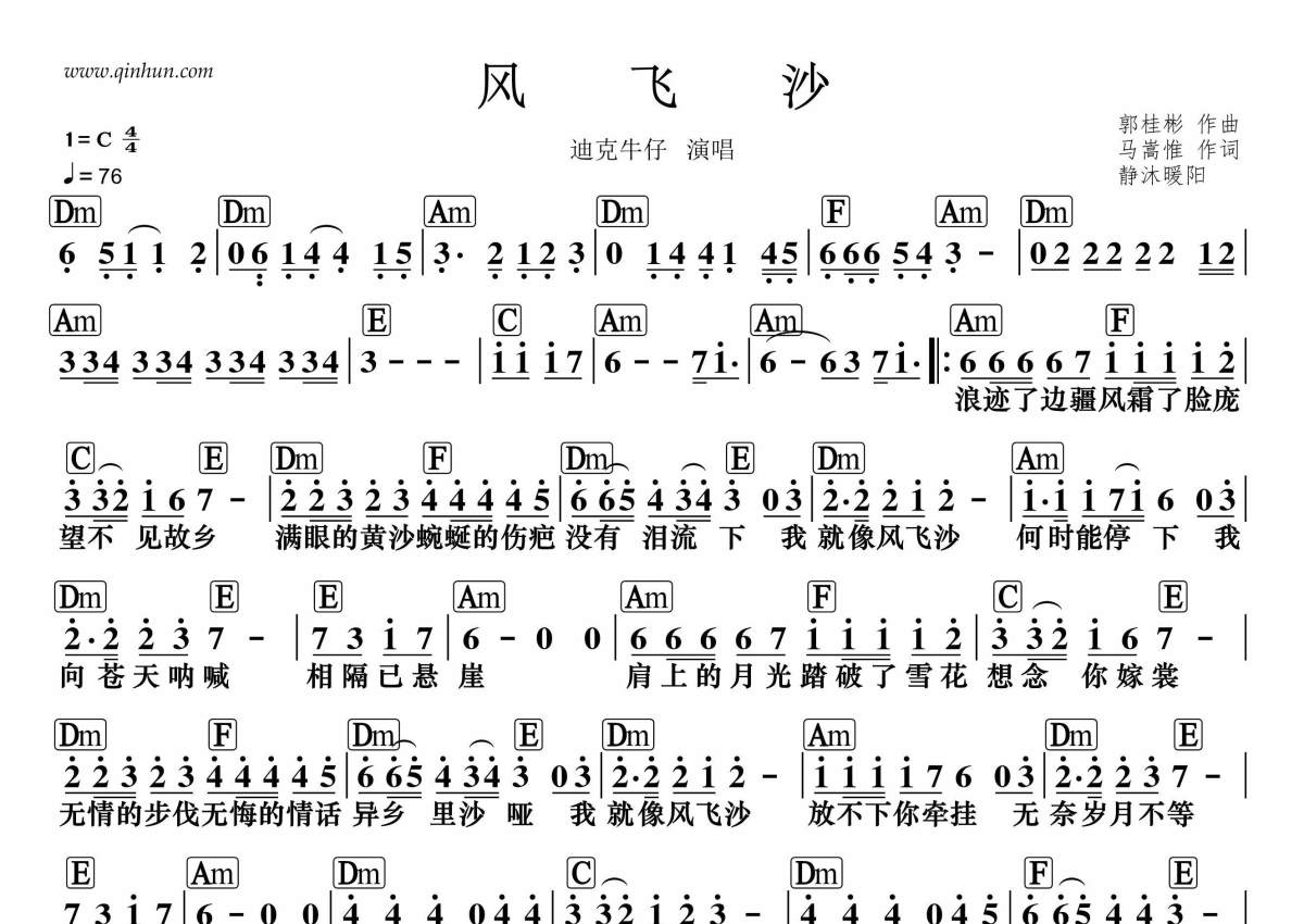 迪克牛仔《风飞沙》简谱