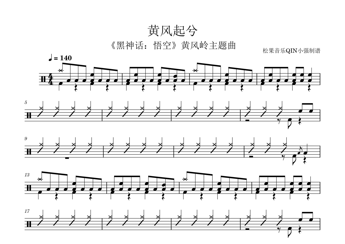 黑神话悟空黄风岭主题曲《黄风起兮》架子鼓谱