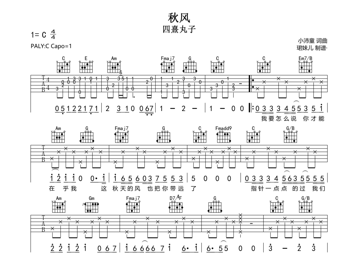 四熹丸子《秋风》吉他谱