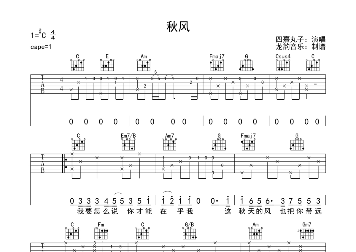 四熹丸子《秋风》吉他谱 - 弹唱六线谱