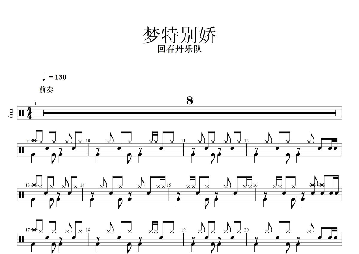 回春丹《梦特别娇》鼓谱 - 架子鼓谱