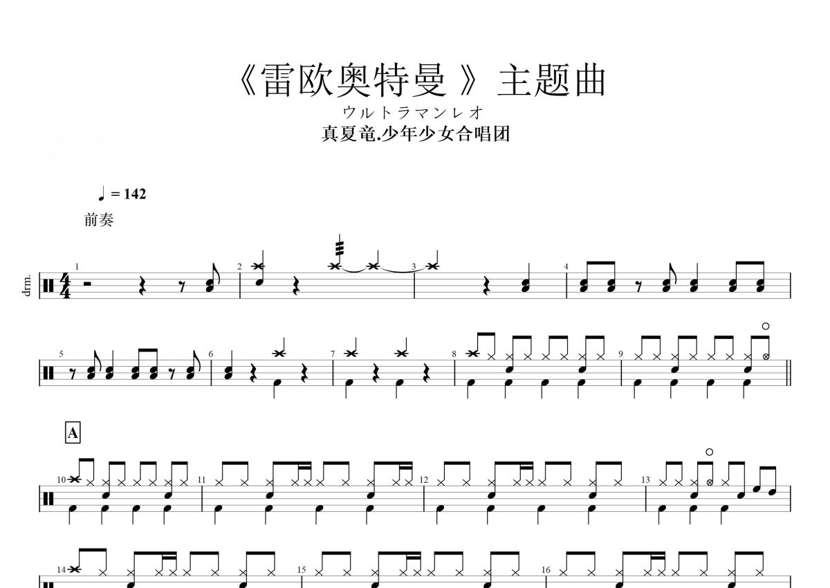 真夏龟《雷欧奥特曼》鼓谱 - 架子鼓谱