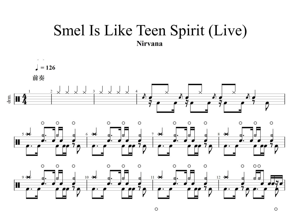 《Smells Like Teen Spirit》是涅槃乐队演唱的一首歌曲,Live,这份鼓谱共有五张高清图谱,图谱由 @打鼓谱 编配上传,图谱使用五线谱编配,使用这份Smells Like Teen Spirit架子鼓谱,你将能够轻松地敲打出这首涅槃乐队的Smells Like Teen Spirit,快来尝试吧。《Smells Like Teen Spirit》是涅槃乐队演唱的一首垃圾摇滚风格单曲,由科特·柯本、大卫·格鲁、克里斯特·诺沃塞克共同作词作曲,布奇·维格制作,发行于1991年9月10日,被收录在涅槃乐队第二张录音室专辑《Nevermind》中。