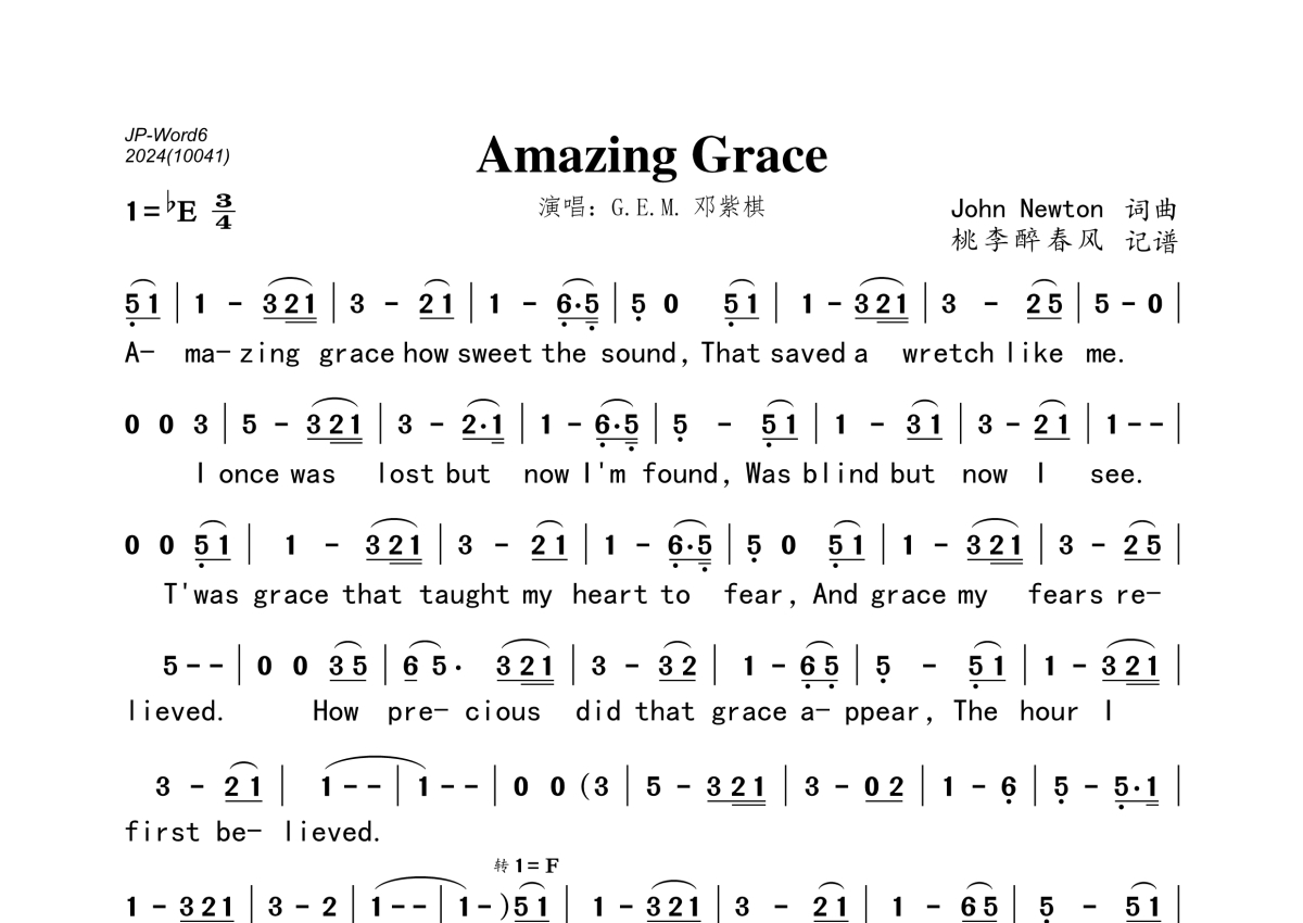 G.E.M. 邓紫棋《Amazing Grace》简谱