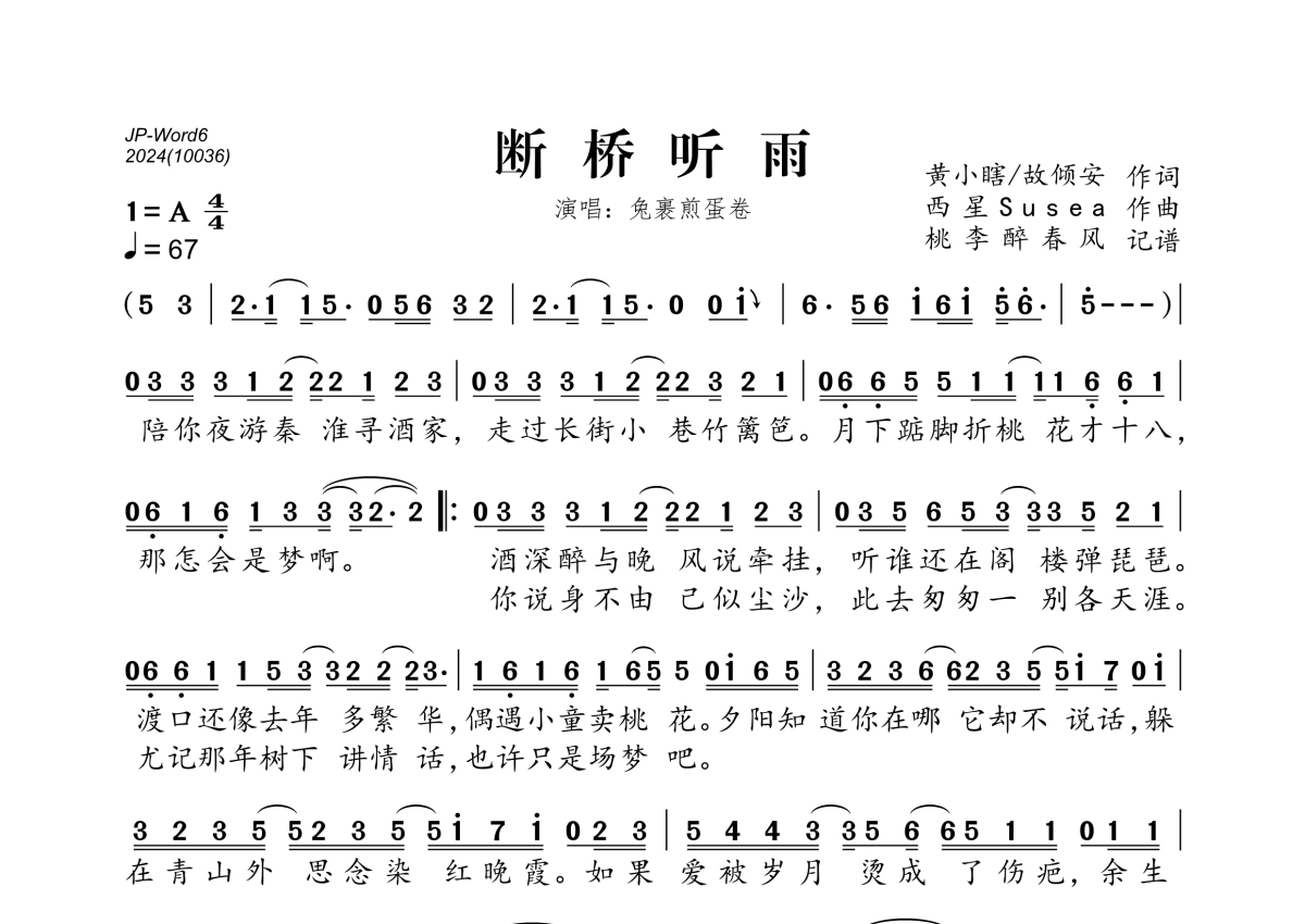 兔裹煎蛋卷《断桥听雨》简谱