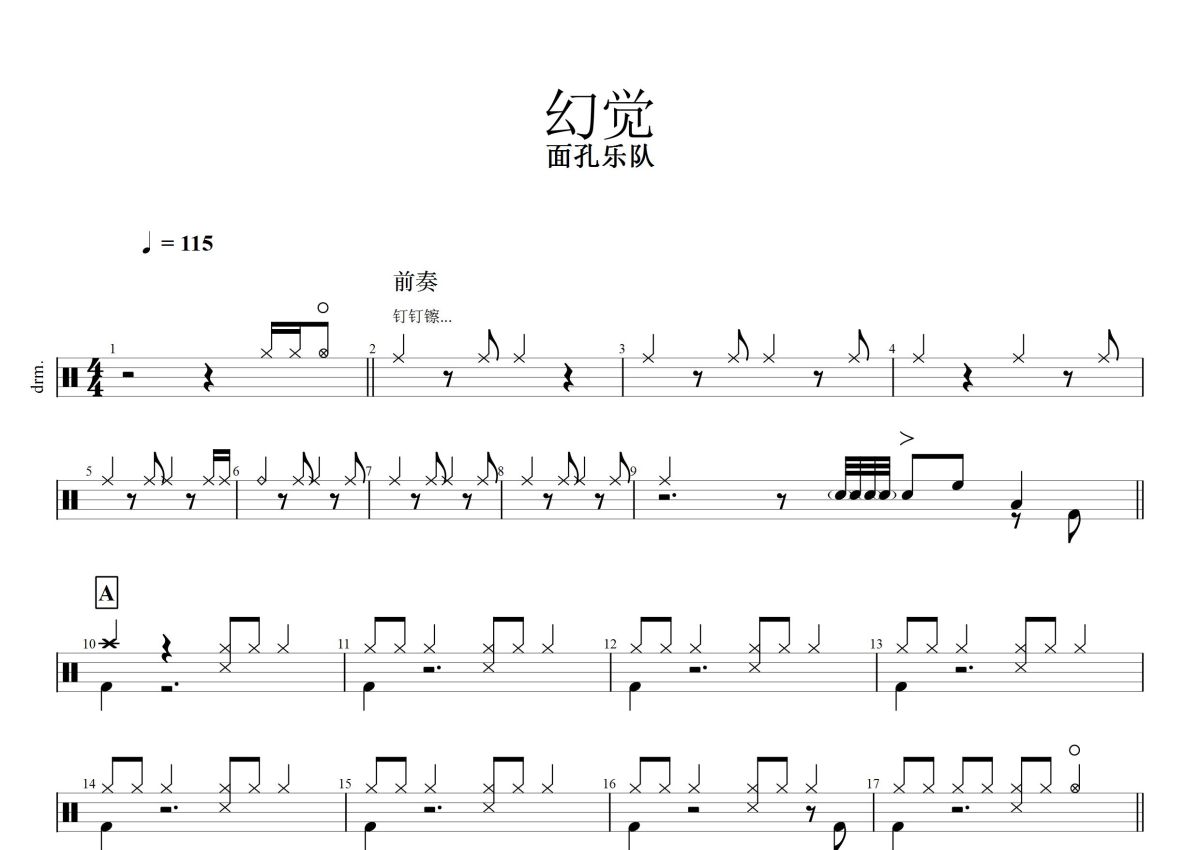面孔乐队《幻觉》鼓谱 - 架子鼓谱