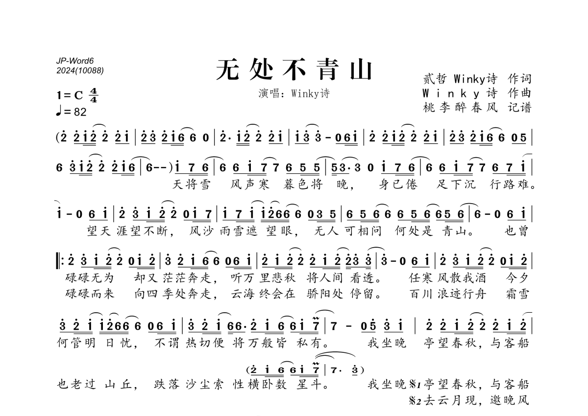 《无处不青山》是Winky诗演唱的一首歌曲,拍号为4/4拍,歌曲速度为每分钟82拍,这份简谱共有一张高清图谱,图谱由 @桃李醉春风 编配上传。