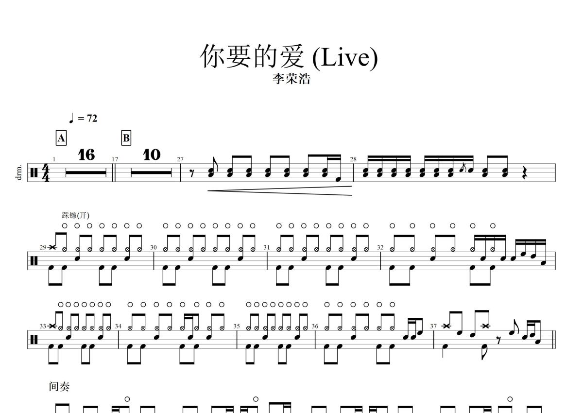 李荣浩《你要的爱》鼓谱 - 架子鼓谱
