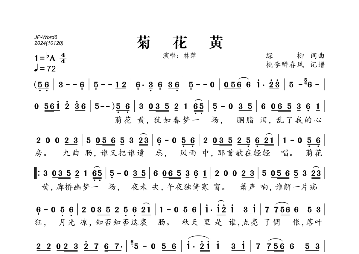 菊花黄简谱 - 林萍