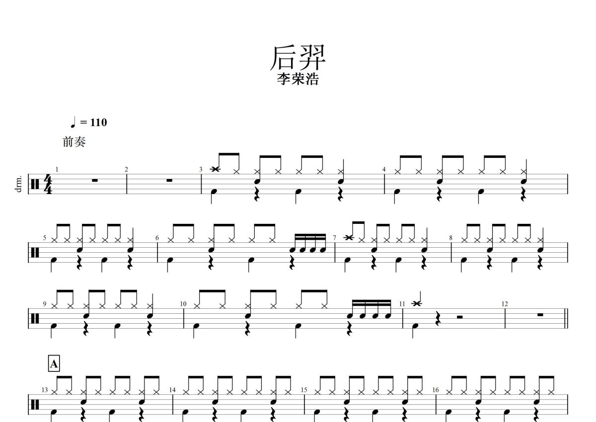 李荣浩《后羿》鼓谱 - 架子鼓谱