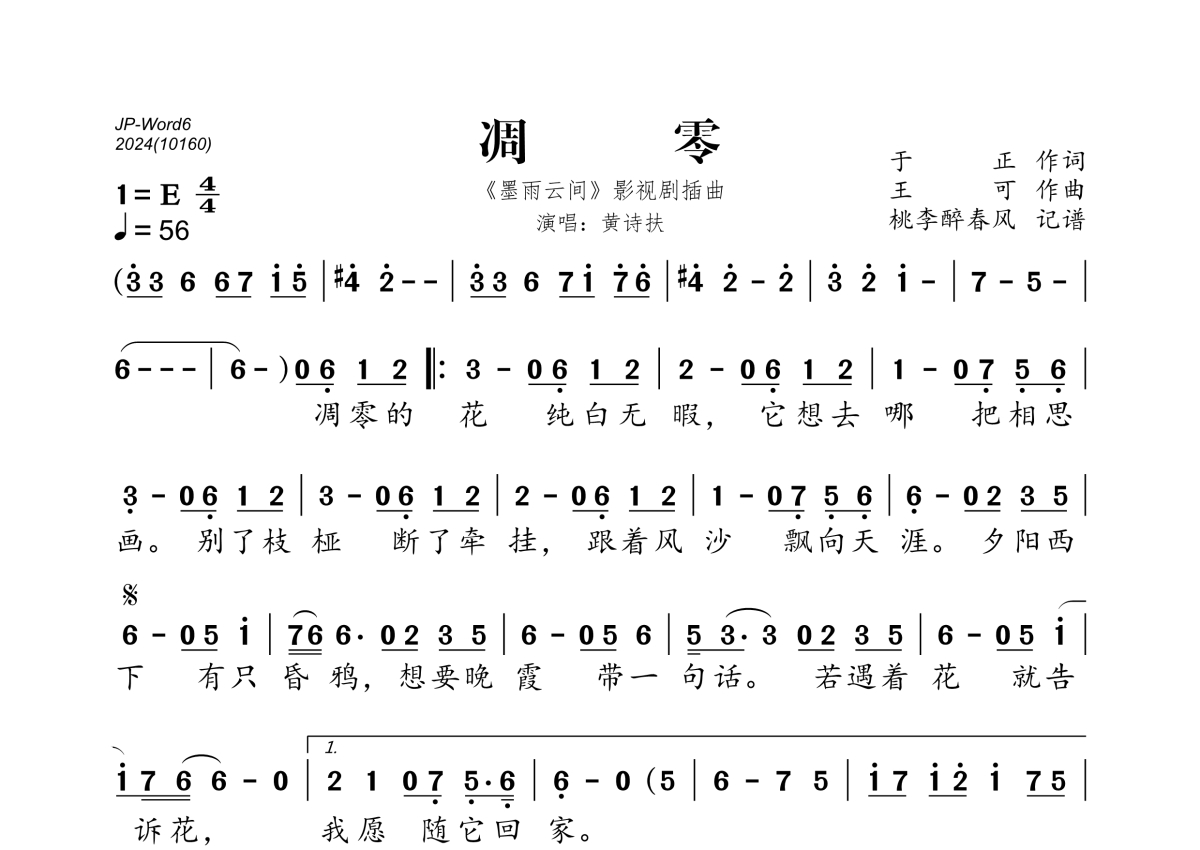 黄诗然《凋零》简谱