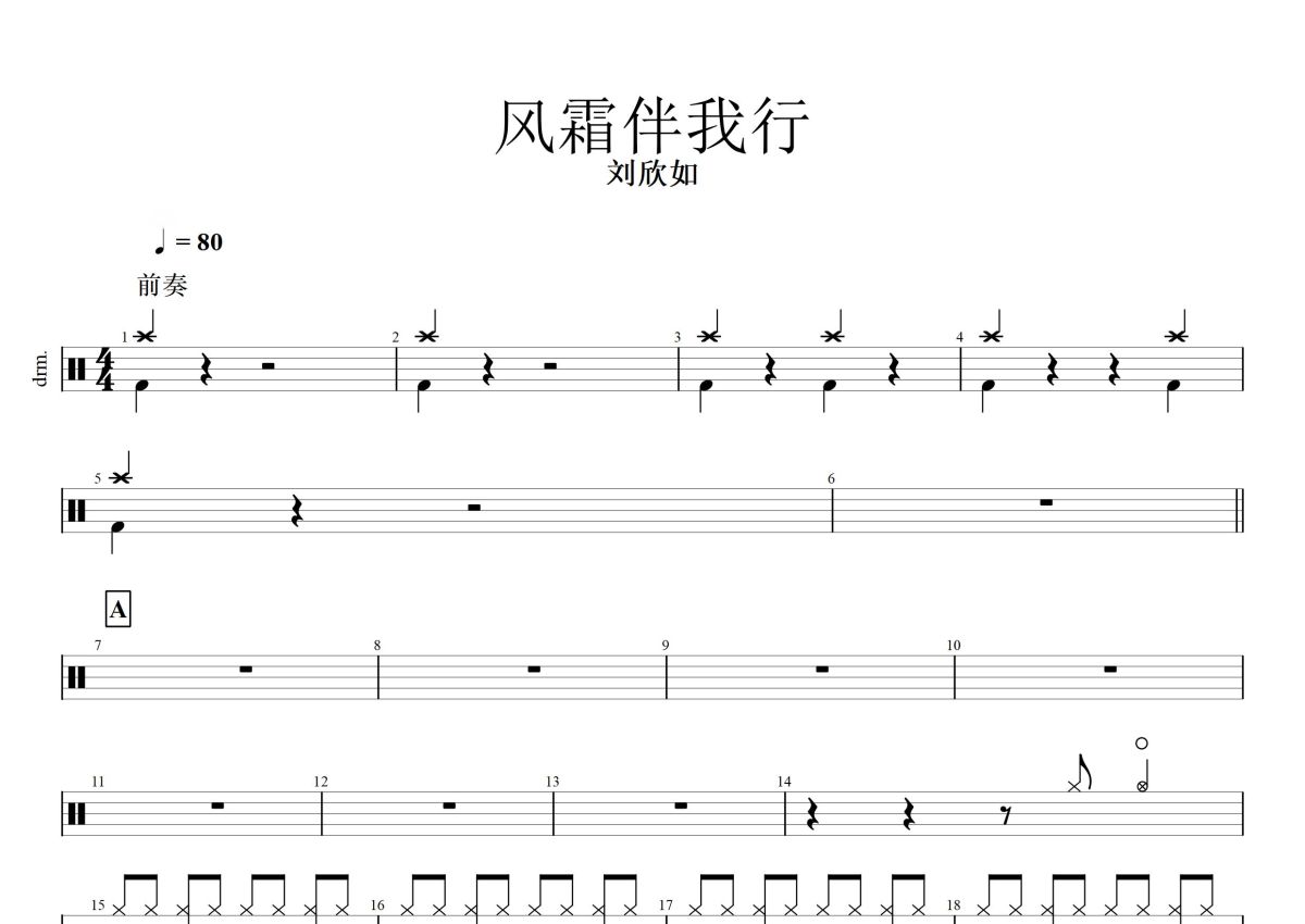 刘欣如《风霜伴我行》鼓谱 - 架子鼓谱