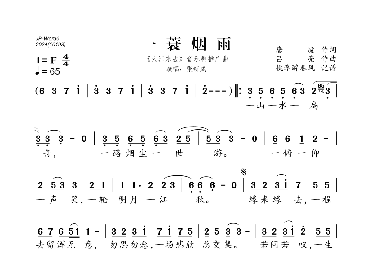 《一蓑烟雨》是张新成演唱的一首歌曲,拍号为4/4拍,歌曲速度为每分钟65拍,这份简谱共有一张高清图谱,图谱由 @桃李醉春风 编配上传。