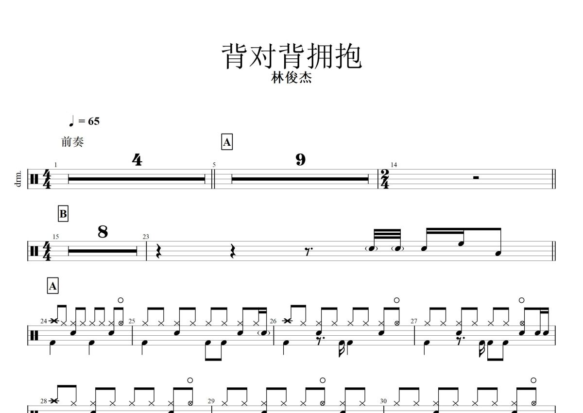 《背对背拥抱》是林俊杰演唱的一首歌曲,这份鼓谱共有两张高清图谱,图谱由 @打鼓谱 编配上传,图谱使用五线谱编配,使用这份背对背拥抱架子鼓谱,你将能够轻松地敲打出这首林俊杰的背对背拥抱,快来尝试吧。《背对背拥抱》是林俊杰演唱的一首歌曲,由林怡凤作词,林俊杰作曲,吴庆隆编曲,收录在林俊杰2009年12月18日发行的专辑《100天》中。