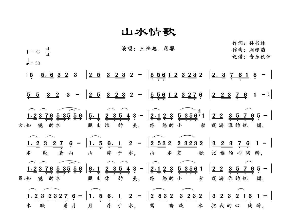山水情歌简谱 - 王梓旭、蒋婴演唱