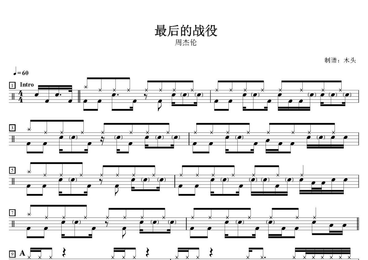 周杰伦《最后的战役》鼓谱 - 架子鼓谱