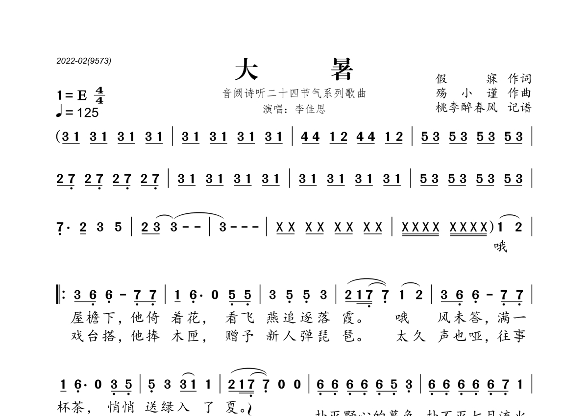 李佳思《音阙诗听二十四节气歌之大暑》简谱