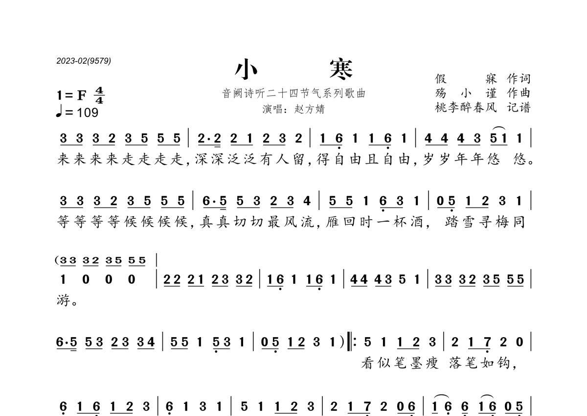 赵方婧《音阙诗听二十四节气歌之小寒》简谱