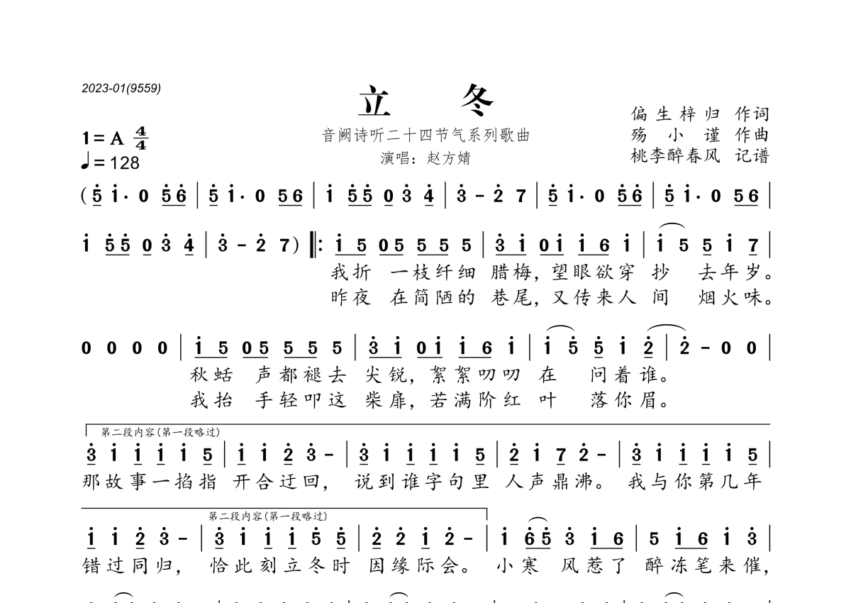 赵方婧《音阙诗听二十四节气歌之立冬》简谱