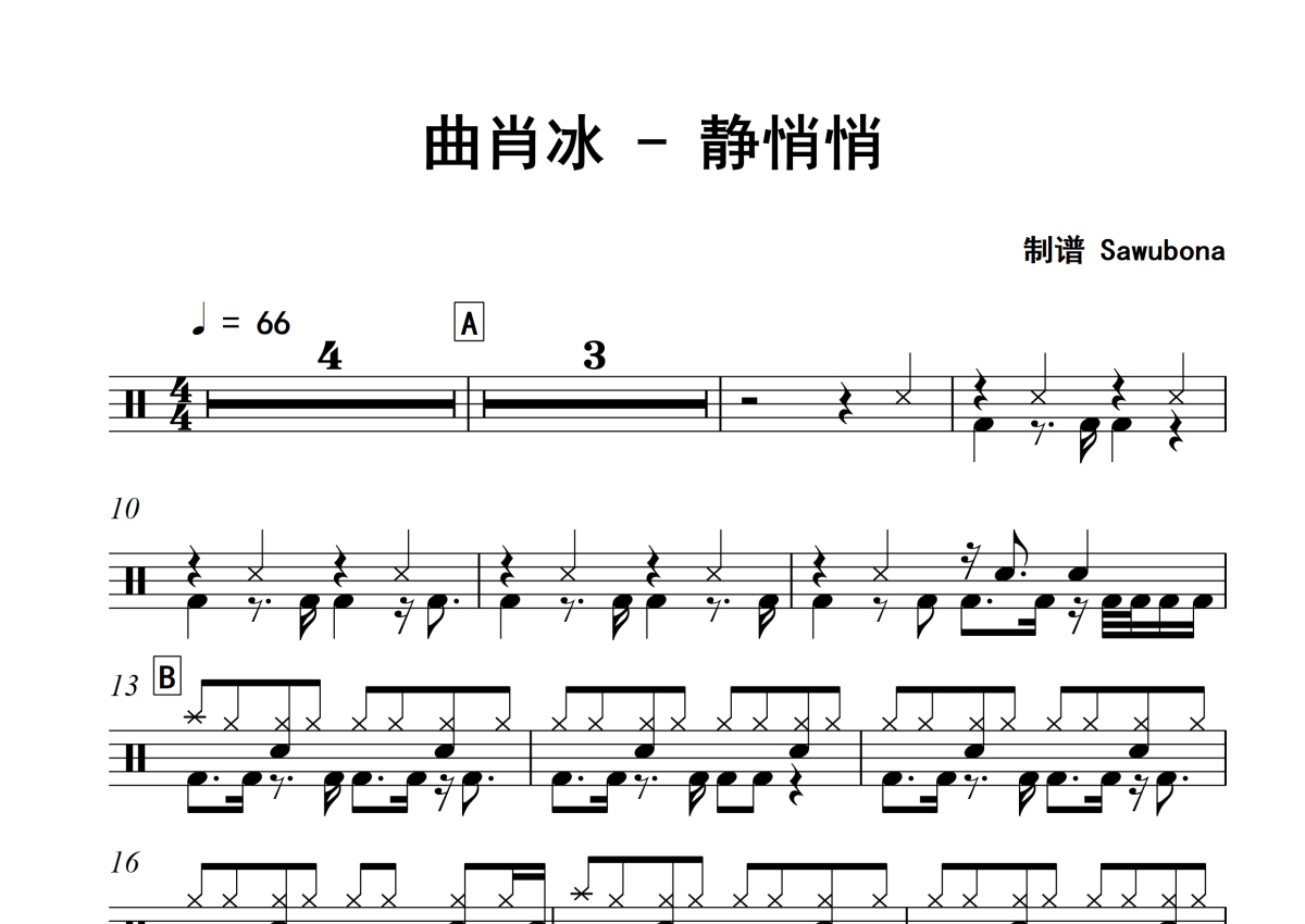 曲肖冰《静悄悄》架子鼓谱