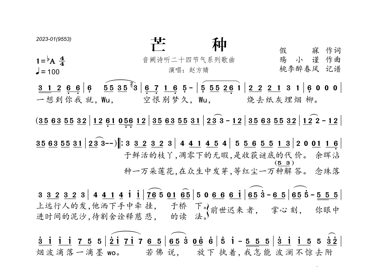 赵方婧《音阙诗听二十四节气歌之芒种》简谱