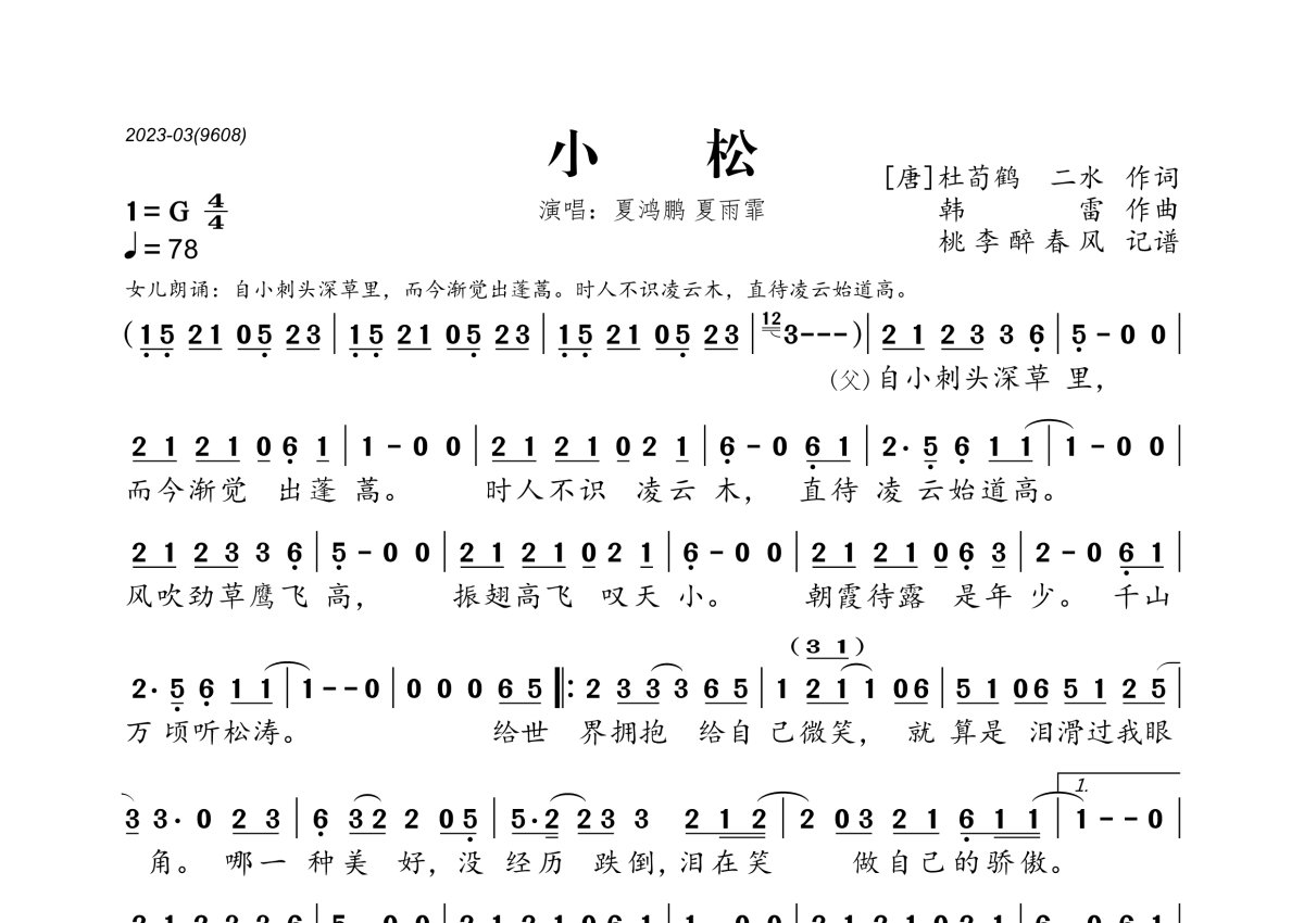 夏鸿鹏、夏雨菲《小松》简谱