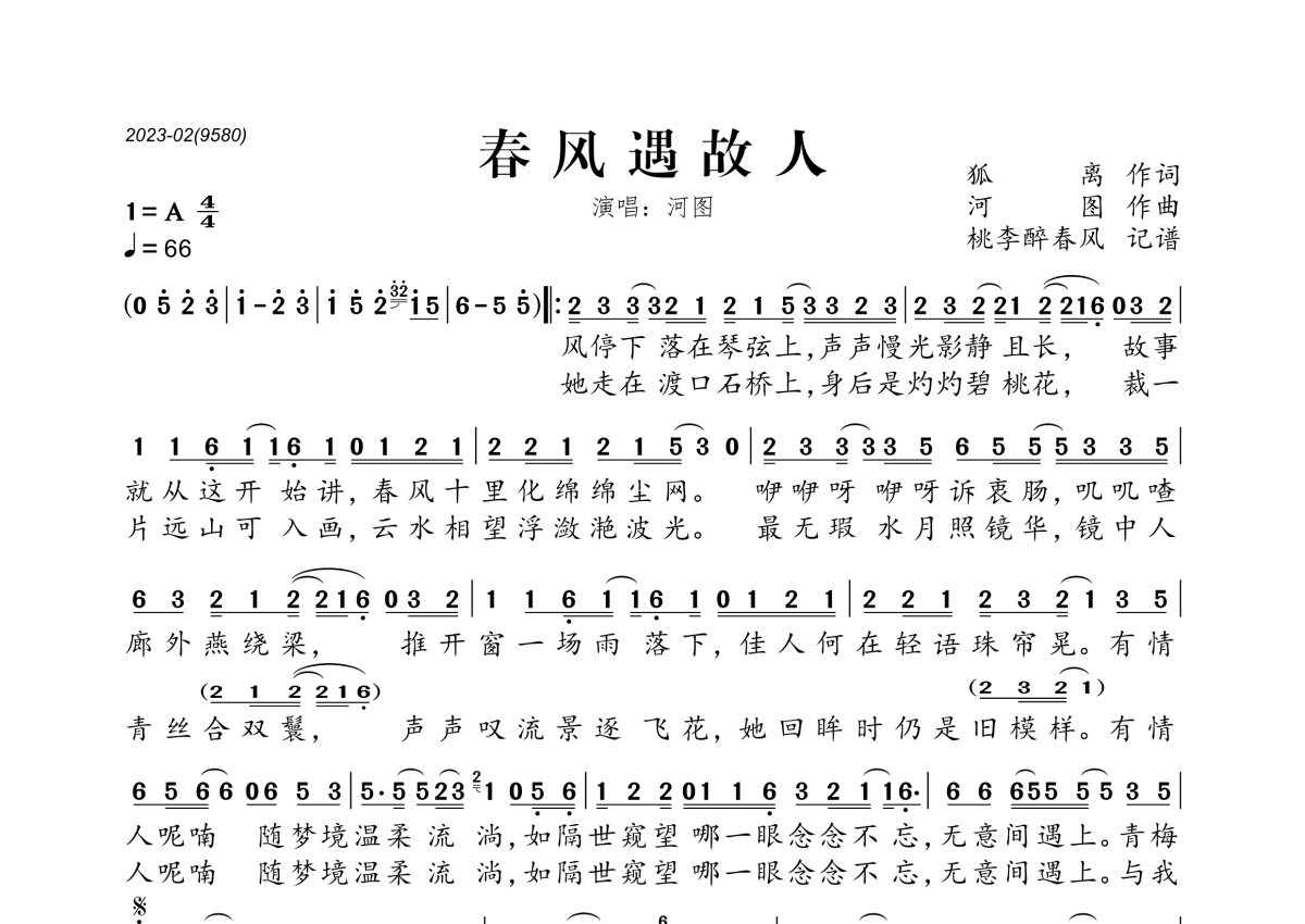 《春风遇故人》是河图演唱的一首歌曲,拍号为4/4拍,歌曲速度为每分钟66拍,这份简谱共有一张高清图谱,图谱由 @桃李醉春风 编配上传。