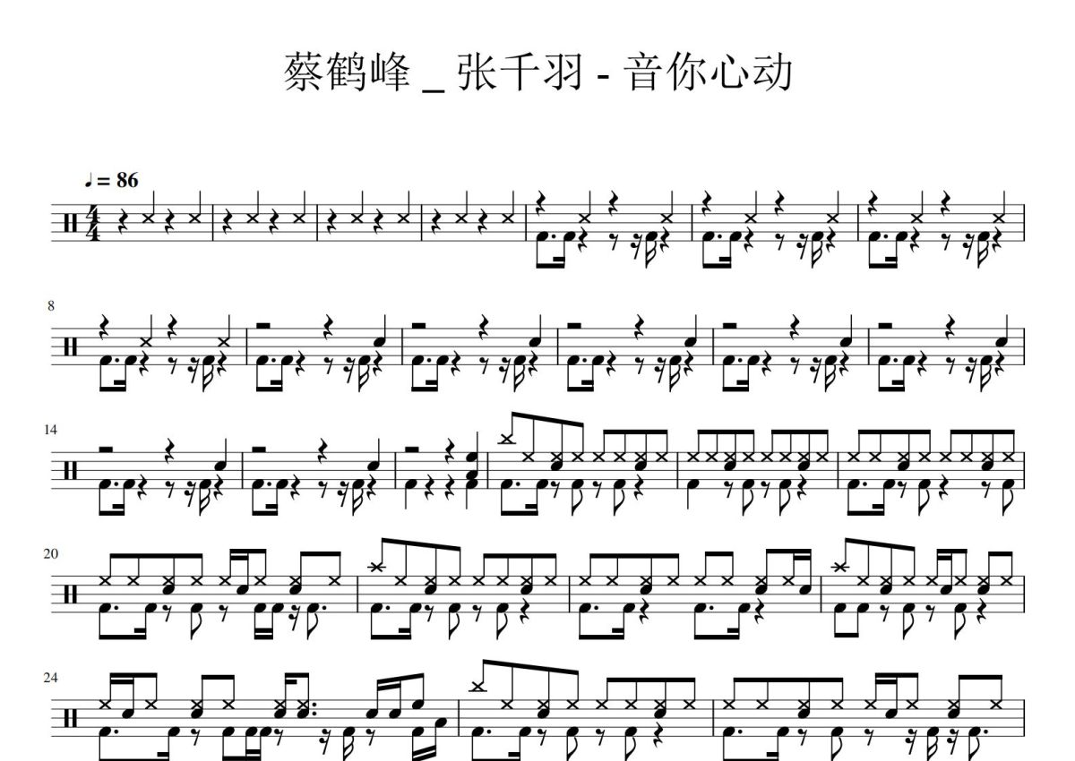 蔡鹤峰/张千羽《音你心动》鼓谱 - 架子鼓谱