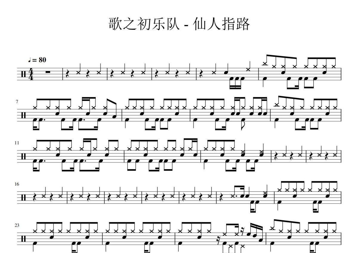 歌之初乐队《仙人指路》鼓谱 - 架子鼓谱