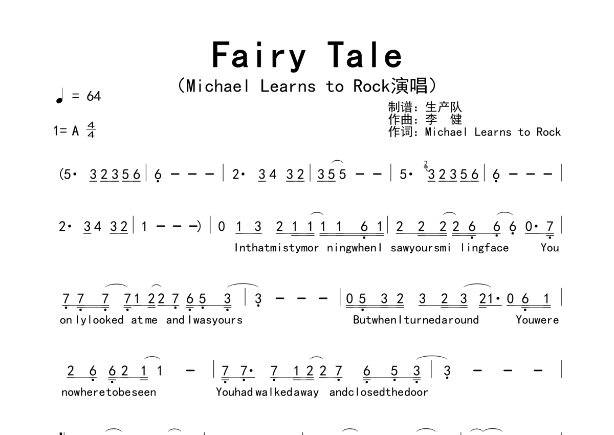 Michael Learn To Rock《Fairy Tale》简谱
